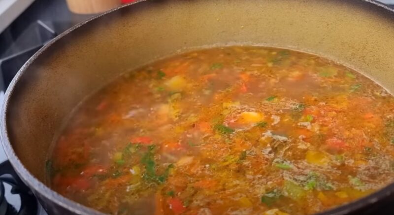 Варим суп под крышкой в течение 15 минут. Дополнить блюдо можно парой зубчиков измельченного чеснока и нашинкованной петрушкой. Спустя 15 минут посолите и поперчите суп по вкусу.