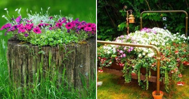 Как сделать необычную клумбу: 4 вазона из подручных материалов