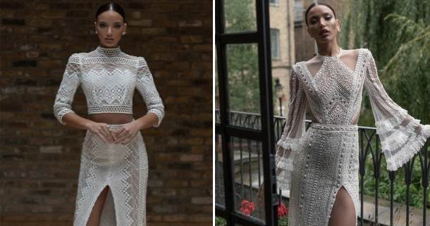 Вырезы на талии, бахрома и кружево. Самые модные и необычные свадебные платья