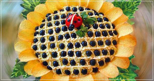 Оригинальный и красивый салат «Подсолнух» на праздничный стол
