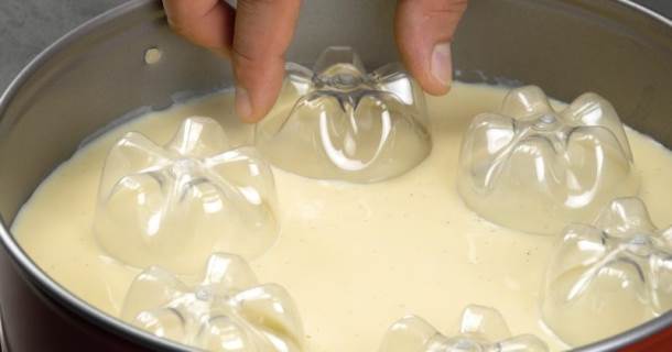 Погружаем 6 бутылок в форму для торта. Через 3 часа получится невероятная красота!