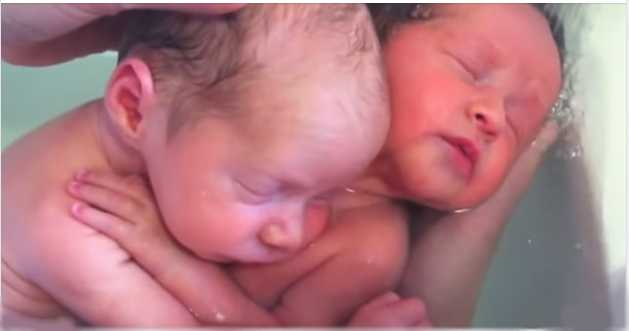 Близнецы, появившиеся только что на свет, не перестают обнимать друг друга