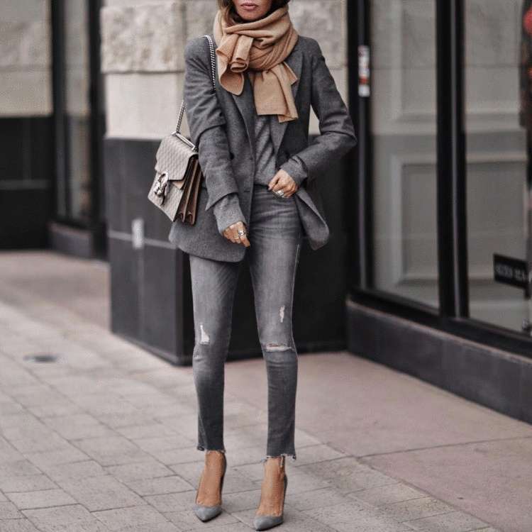 После того, как вы прошли все подготовительные этапы, настало время создания образа. Удивим вас, но серые брюки и джинсы очень универсальны, поэтому прекрасно будут сочетаться с большинством вещей вашего гардероба.