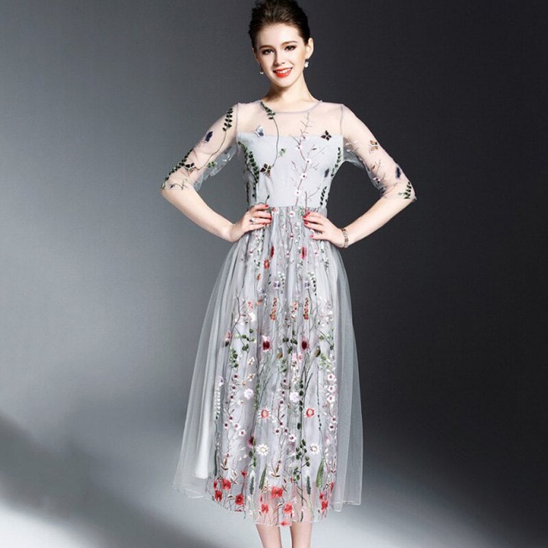 Необыкновенно красивая цветочная вышивка на вечернем платье