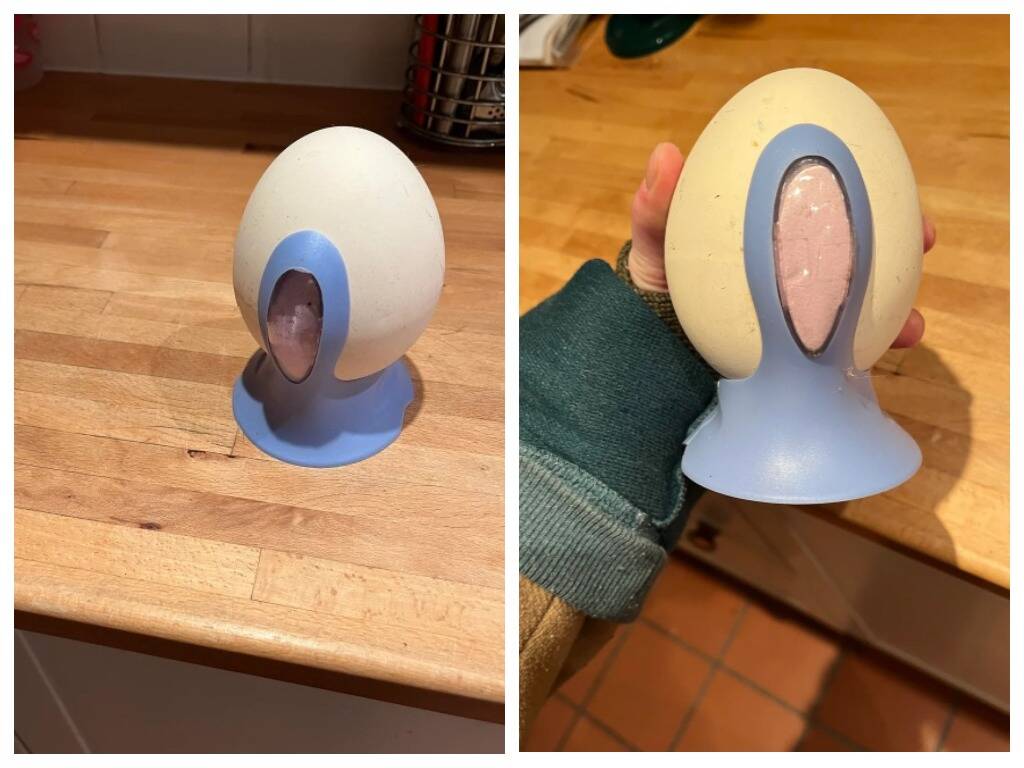 15. Въехали в новую квартиру и нашли тут на кухне такую странную штуку. Яйцо, вроде бы, керамическое, а синяя часть пластиковая. Что это может быть?