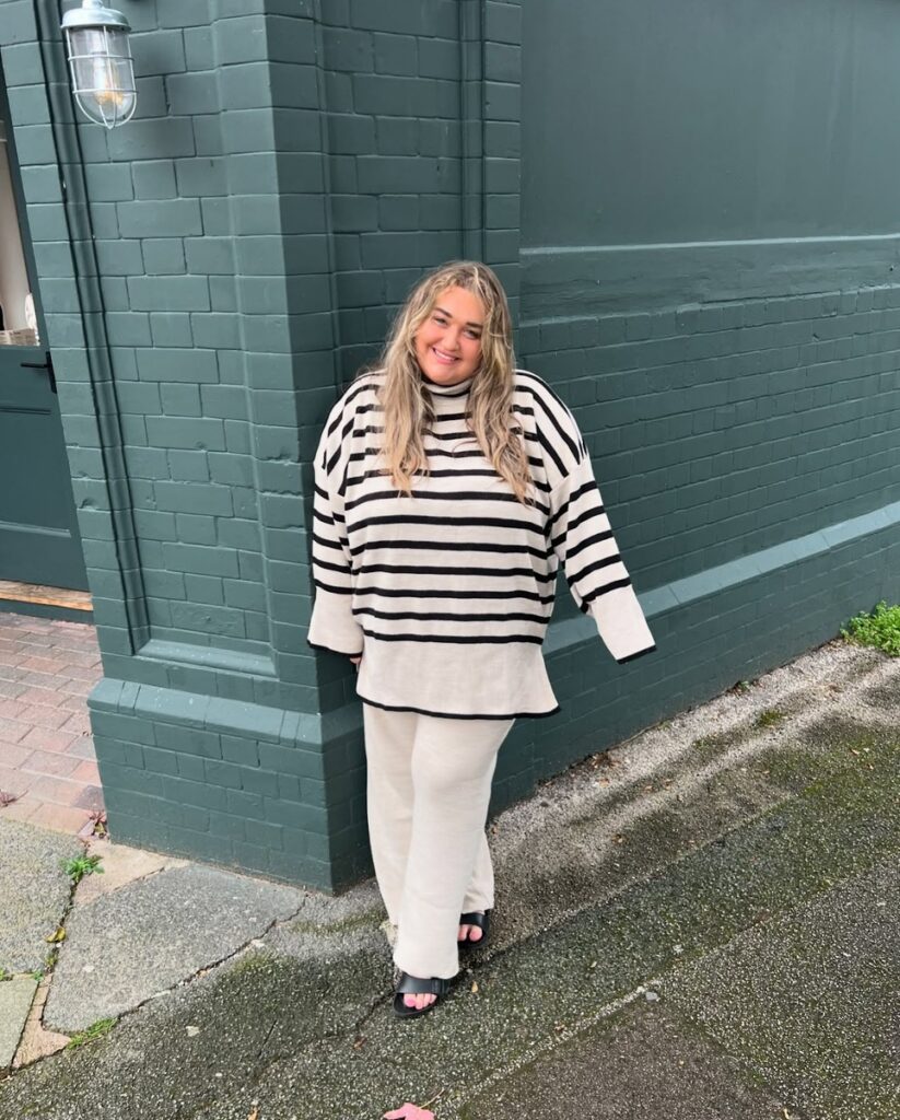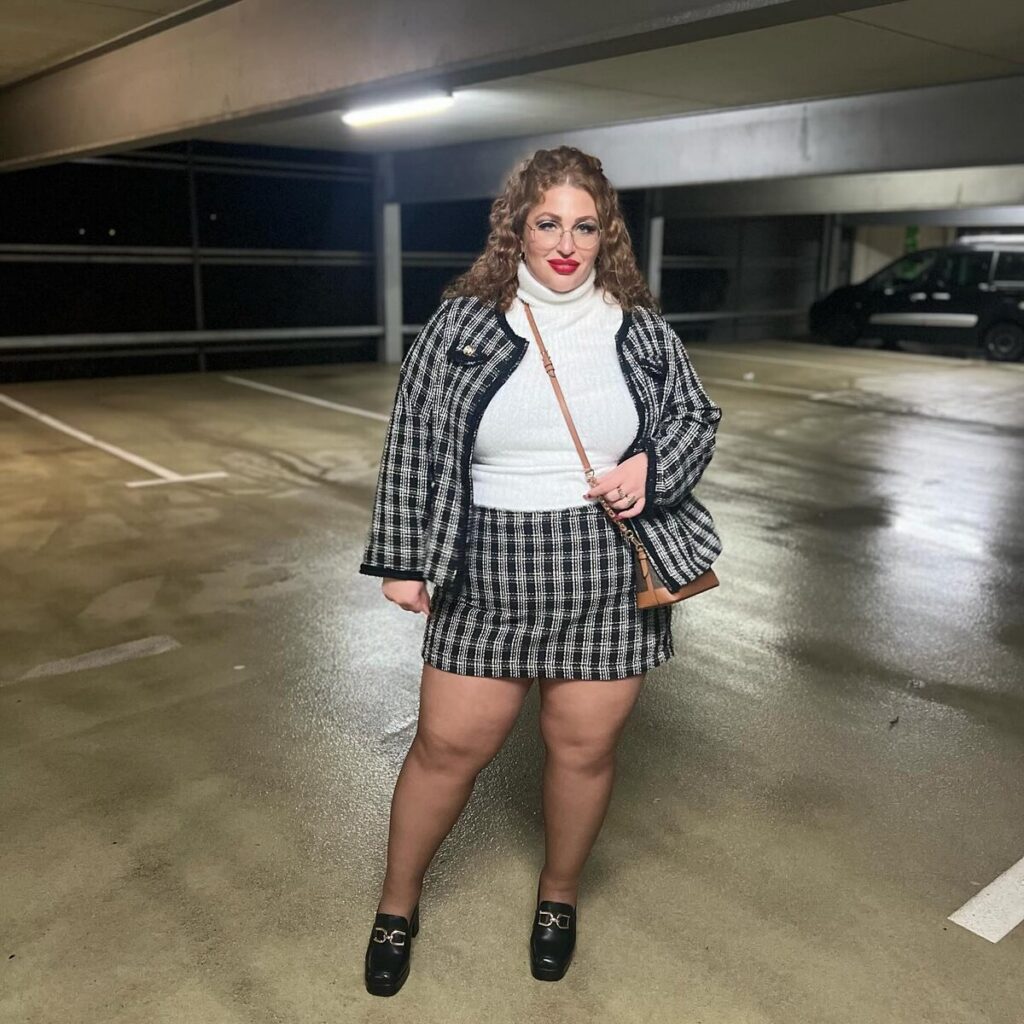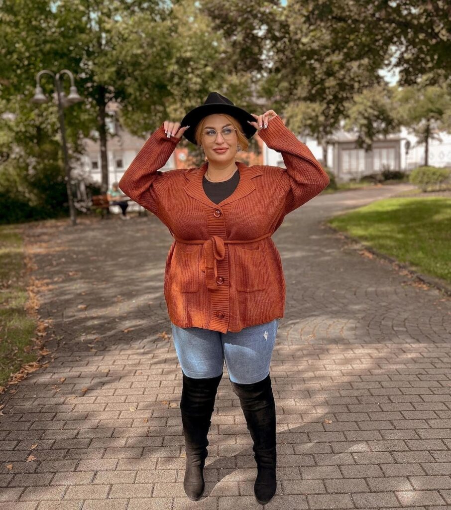 Чтобы объёмная одежда смотрелась на пышке хорошо, достаточно применить несколько хитростей. Например, оставлять запястья и щиколотки открытыми, чтобы придать образу лёгкость и не превратиться в колобка. Далее — акцент на талии.