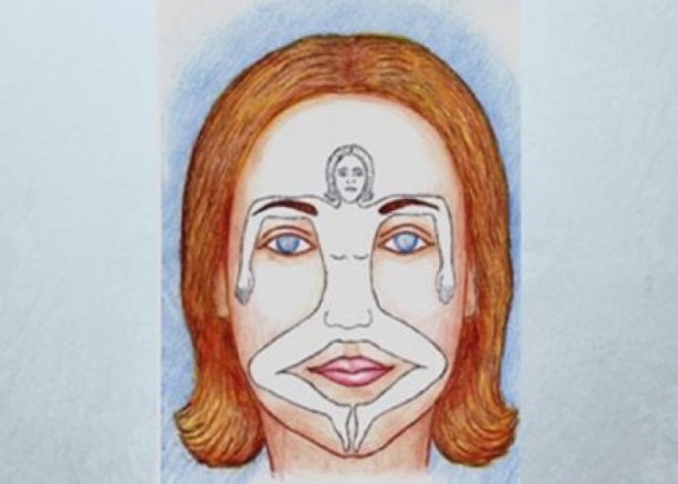 • Верхняя часть лица (лоб) представляет собой детство, прошлое и отношения с родителями, иногда бывают проявлены отпечатки даже прошлых жизней, но это встречается редко