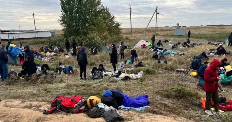 В Казахстан от мобилизации скрылось уже около 100 тысяч россиян. Провоз в импровизированном лагере возле КПП быстро заканчивается.