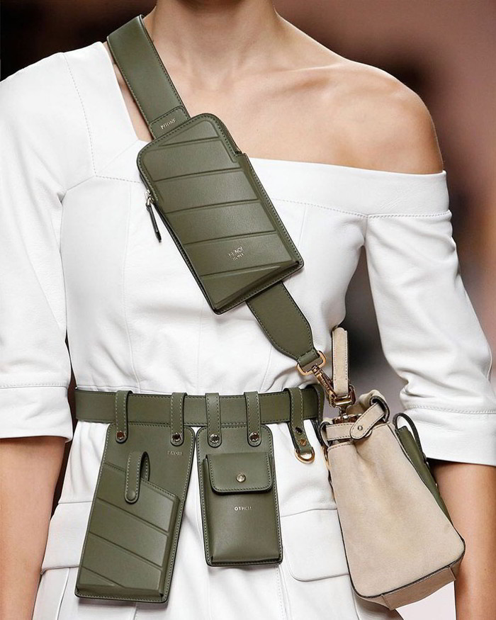 Огромные сумки-шоперы остались в прошлом, так что теперь стоит обратить внимание на их миниатюрные варианты. Аккуратная сумочка жесткой формы будет актуальна во все времена, поэтому рекомендуем приобрести подобные модели. Особый писк — это сочетание сразу нескольких небольших сумок и широкий пояс с сумками.