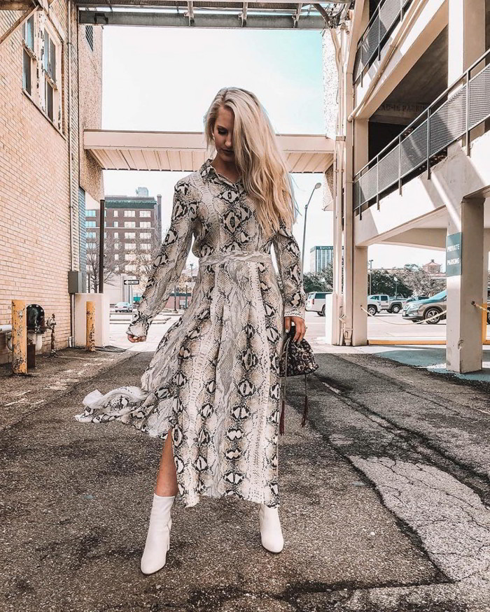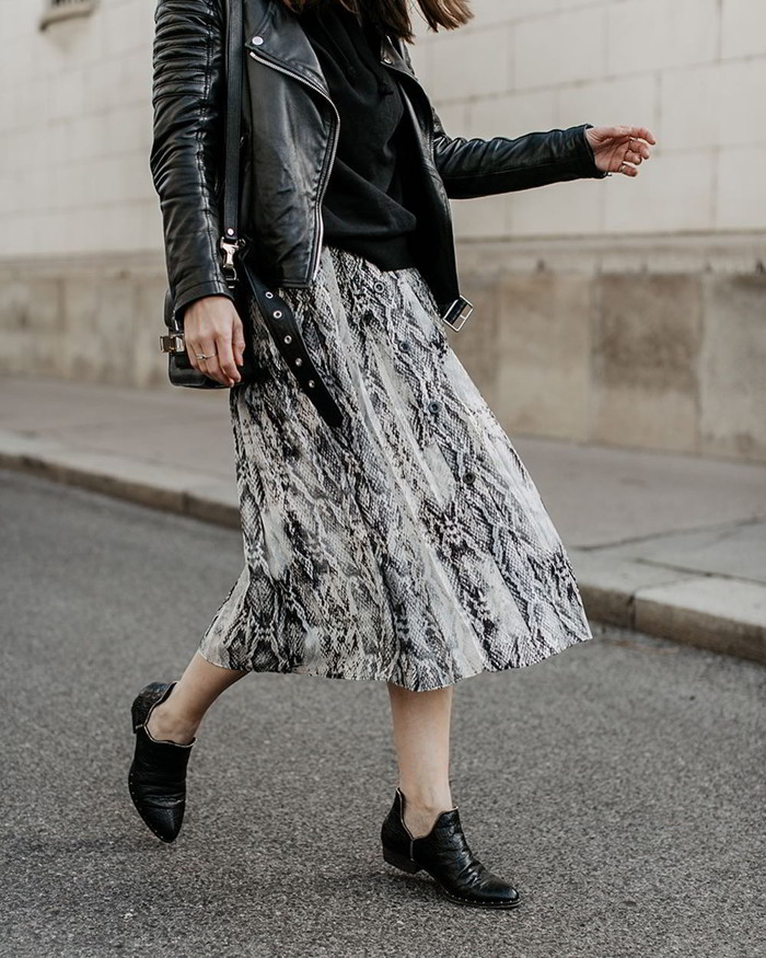 Даже небольшая деталь со змеиным принтом выгодно привлечет внимание к вашему образу. Чтобы не переборщить, не забывайте разбавлять такие акценты простыми и лаконичными вещами. Самым скромным стоит обратить внимание на аксессуары: особенно стильно смотрятся сумки со змеиным принтом, к тому же они подойдут практически к любому образу.