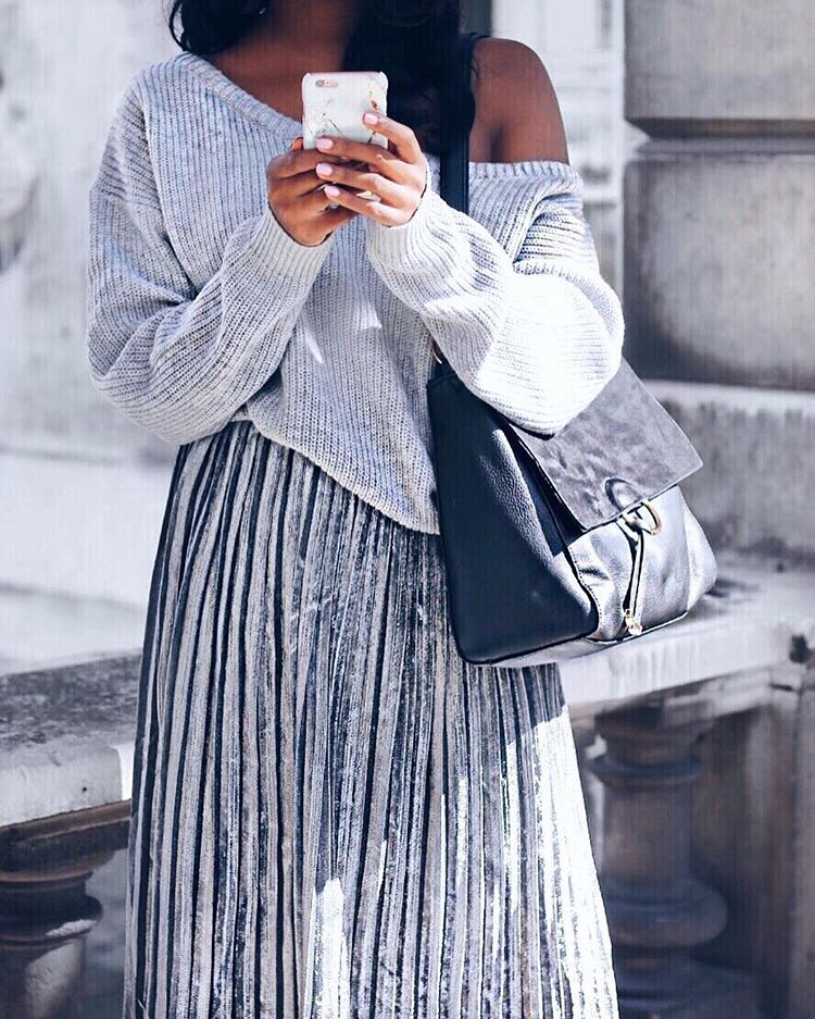 Этот на первый взгляд непростой и слишком яркий тренд легко «приручить» — стоит лишь разбавить металлик базовыми вещами. Не бойтесь экспериментировать и добавлять такие модные акценты. А если не хотите слишком сильно выделяться, то отдавайте предпочтение аксессуарам или обуви с эффектом металлик.