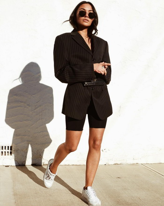 Многие блогеры подметили этот тренд на подиумах еще прошлой весной, и вот наконец он дошел и до нас. Как ни странно, велосипедки хорошо смотрятся не только в спортивных образах: то, как они сочетаются с пиджаками, уже практически стало классикой. Если для вас этот тренд все-таки слишком смелый, можно обратить внимание на шорты-бермуды — они так же будут актуальны в этом сезоне.