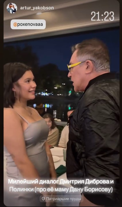 Накануне Дмитрия Диброва заметили в ресторане на Патриарших прудах в очень неожиданной компании. Телеведущий поздравил дочь Даны Борисовой, Полину, с днем рождения. Наследница телезвезды отмечала 18-летие.