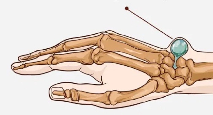 • Наличие округлой мягкой припухлости в области запястья, которая прощупывается под кожей.