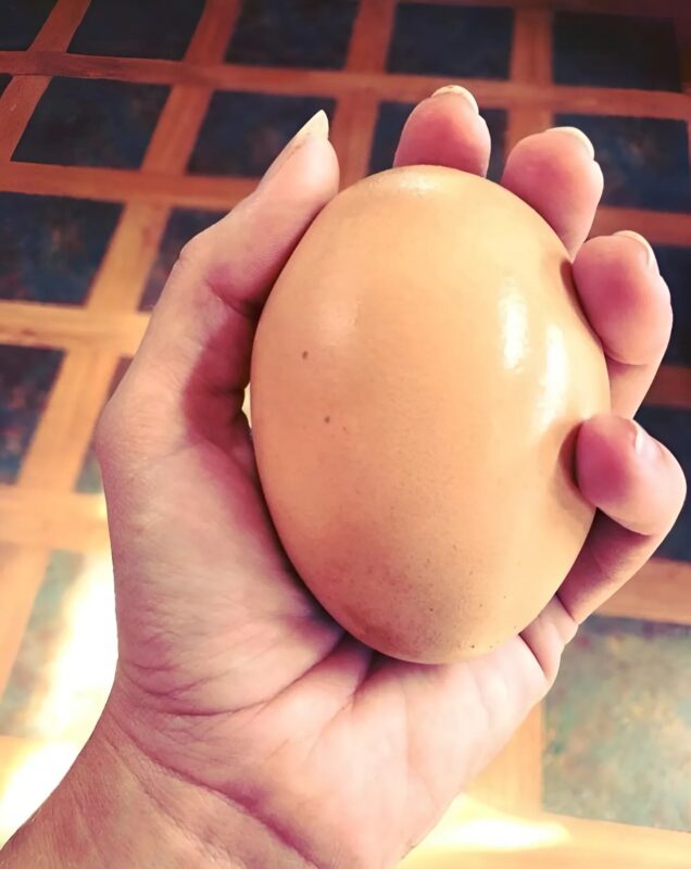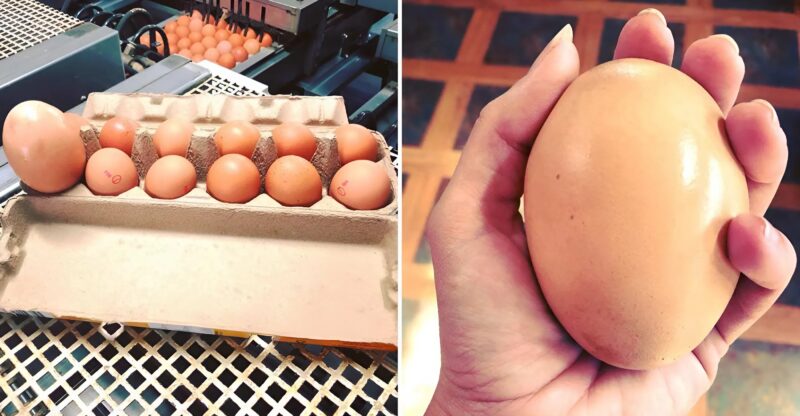 💬 «Одна из наших кур работала сверхурочно. Посмотрите на этого гиганта! Средний вес яйца — около 58 граммов, а этот красавец весит 176 граммов!»