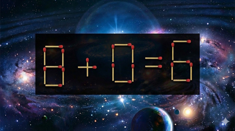 Посмотрите на картинку. На ней пример «8+0=6». Вам нужно за 15 секунд переложить 1 спичку в правильное место. Догадываетесь, куда?