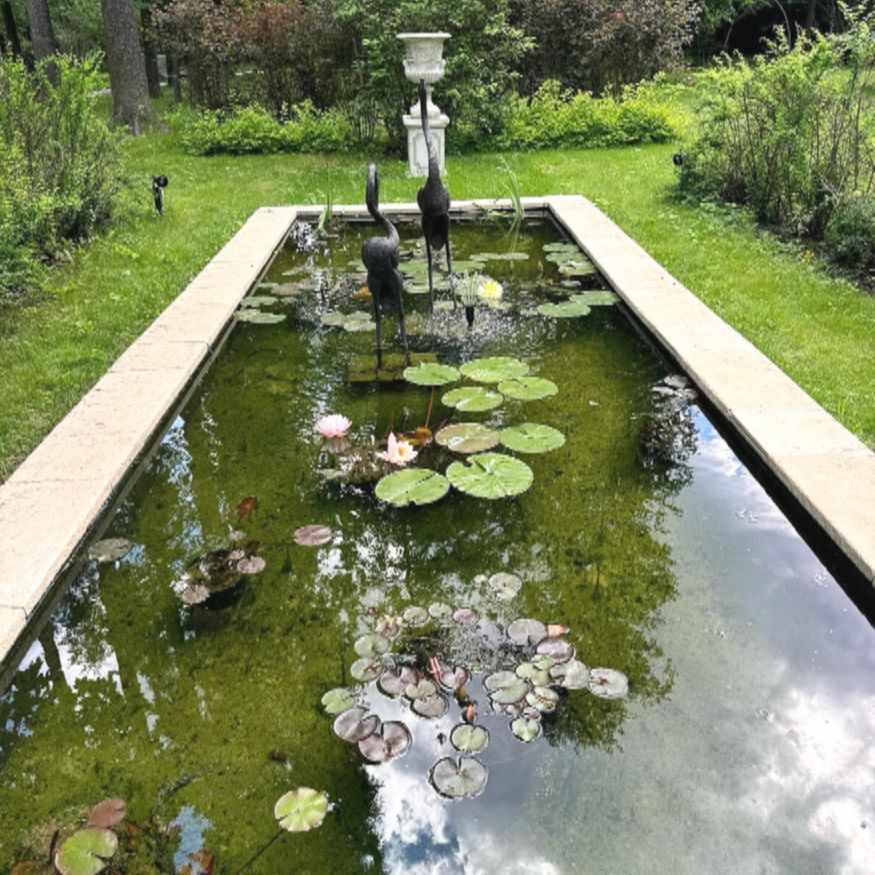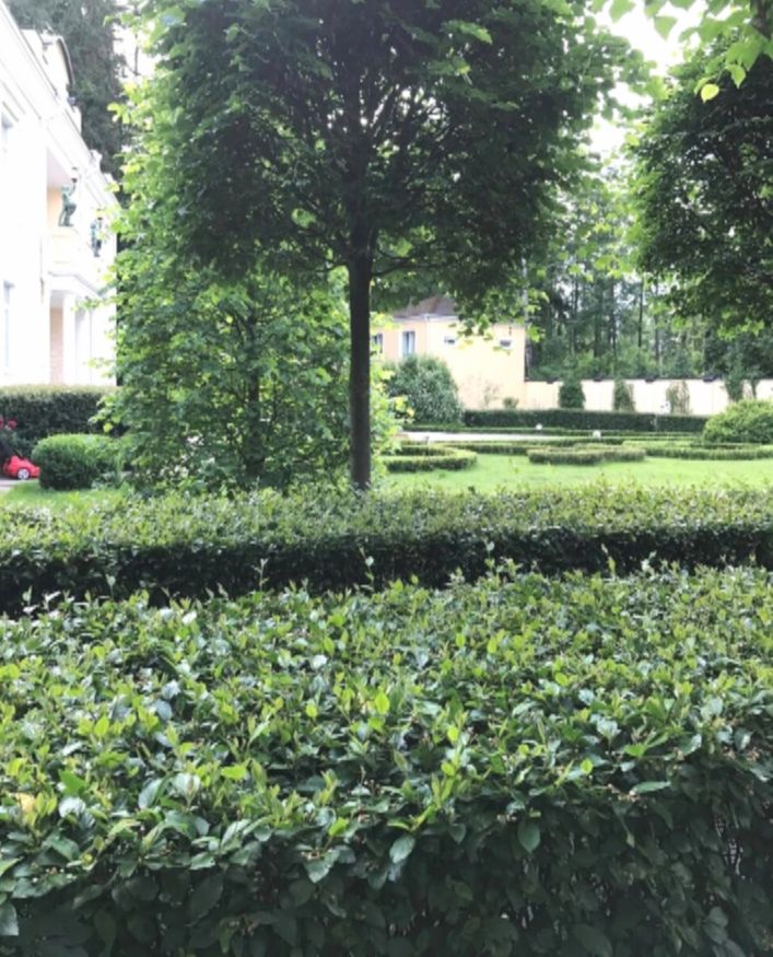 Впоследствии ели, некогда росшие на участке, заменили зона отдыха и площадки для внуков. А сад украсили античные скульптуры, придающие территории атмосферу старинного парка.