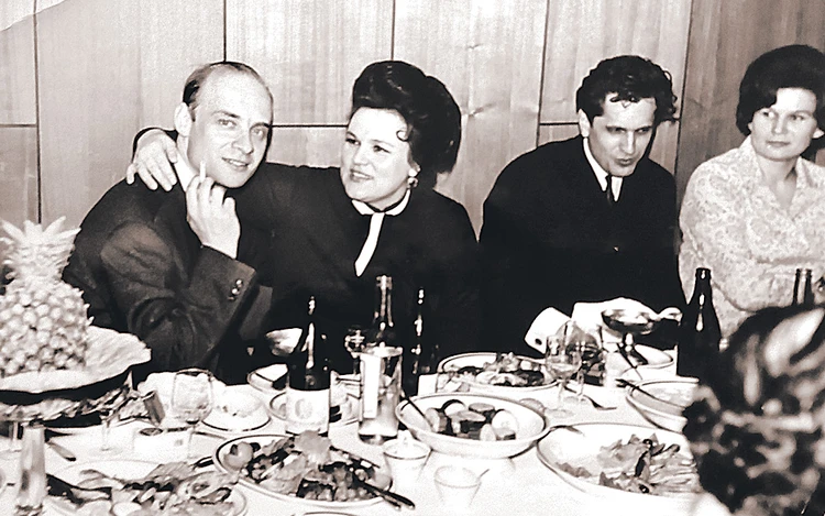 Людмила Зыкина 10 лет была замужем за Котёлкиным. На фотографии он справа от неё, с края сидит Валентина Терешкова. Зыкина обнимает Николая Добронравова