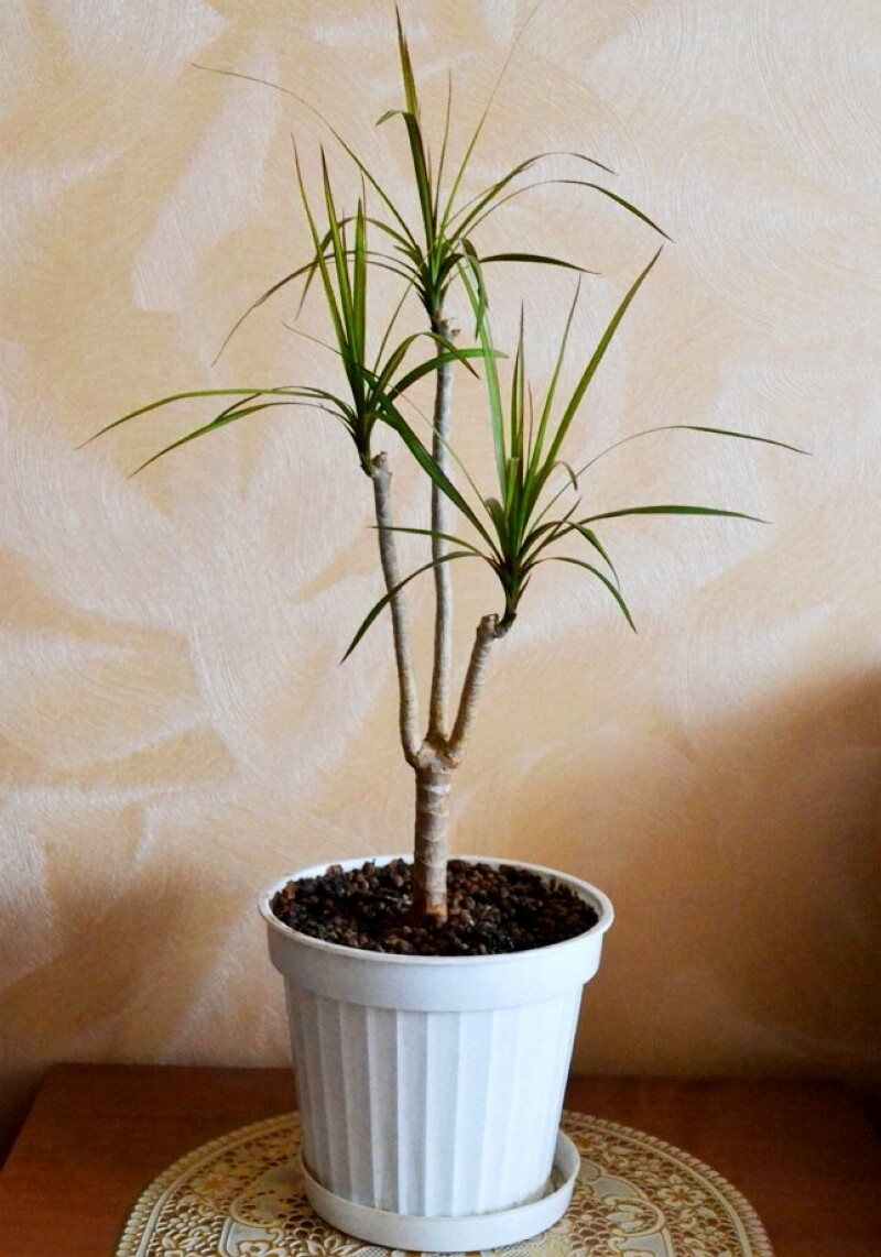 У взрослого растения стволы очень длинные и тонкие, поэтому они перестают удерживать верхушки-«помпоны» и начинают искривляться под тяжестью листьев. Такая драцена едва ли имеет привлекательный вид. Но не стоит выбрасывать растение только из-за того, что оно перестало украшать интерьер квартиры. Драцене можно вернуть былую красоту, а заодно и размножить растение. Осталось только научиться, как это правильно сделать.