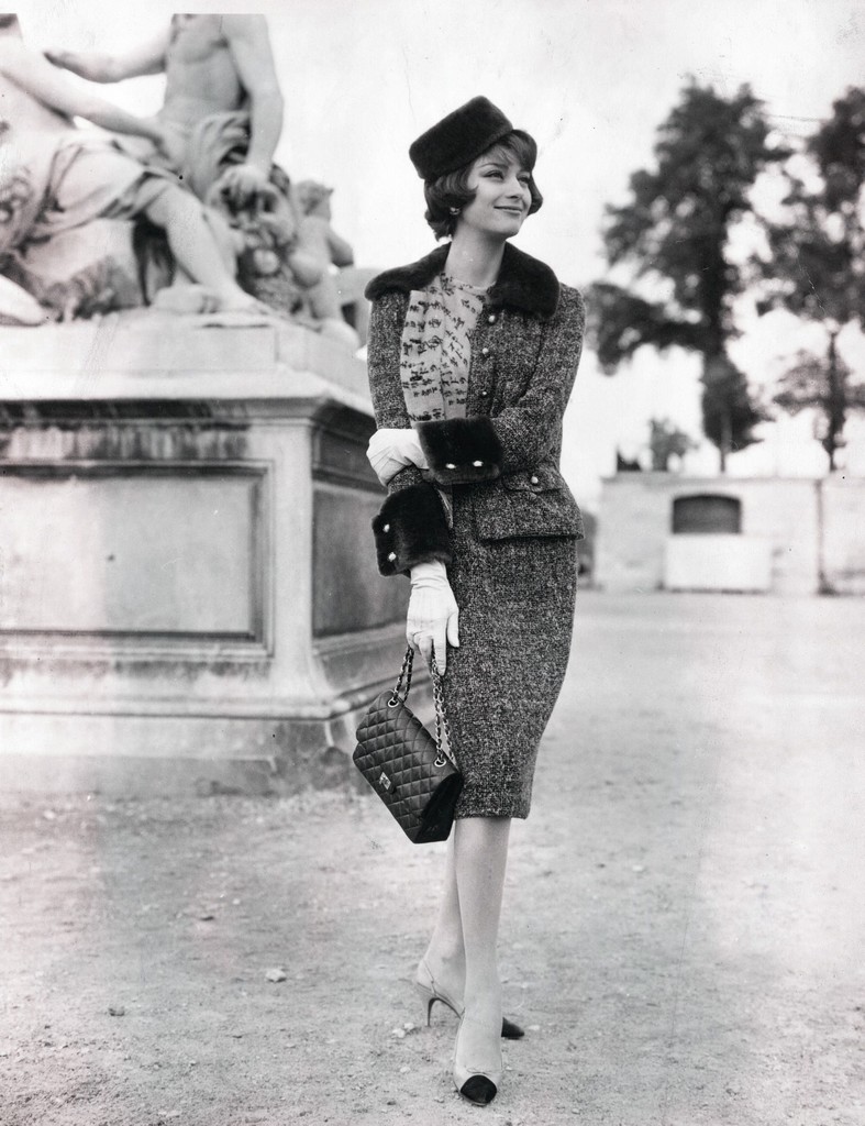 Одновременно с кукольными платьями от Dior существовал и более практичный стиль, представленный элегантными вещами от Chanel. В 71 год несравненная Коко триумфально вернулась в модную индустрию с коллекцией, состоящей из укороченных жакетов и узких юбок.