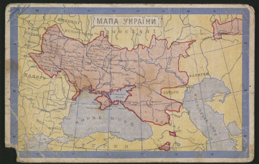 В польском архиве есть интересная открытка с изображением карты Украины.