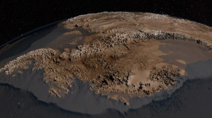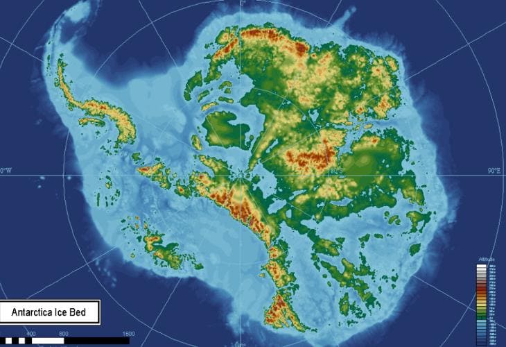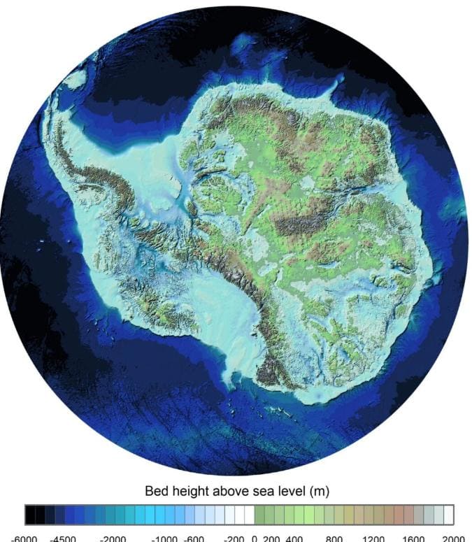 Одной из главных географических особенностей подлёдной Антарктиды является впадина Бентли — самая глубокая точка суши на Земле, не заполненная жидкой водой.