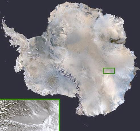 На дне антарктического ледяного щита находятся подледные озёра, крупнейшее из которых — озеро Восток.