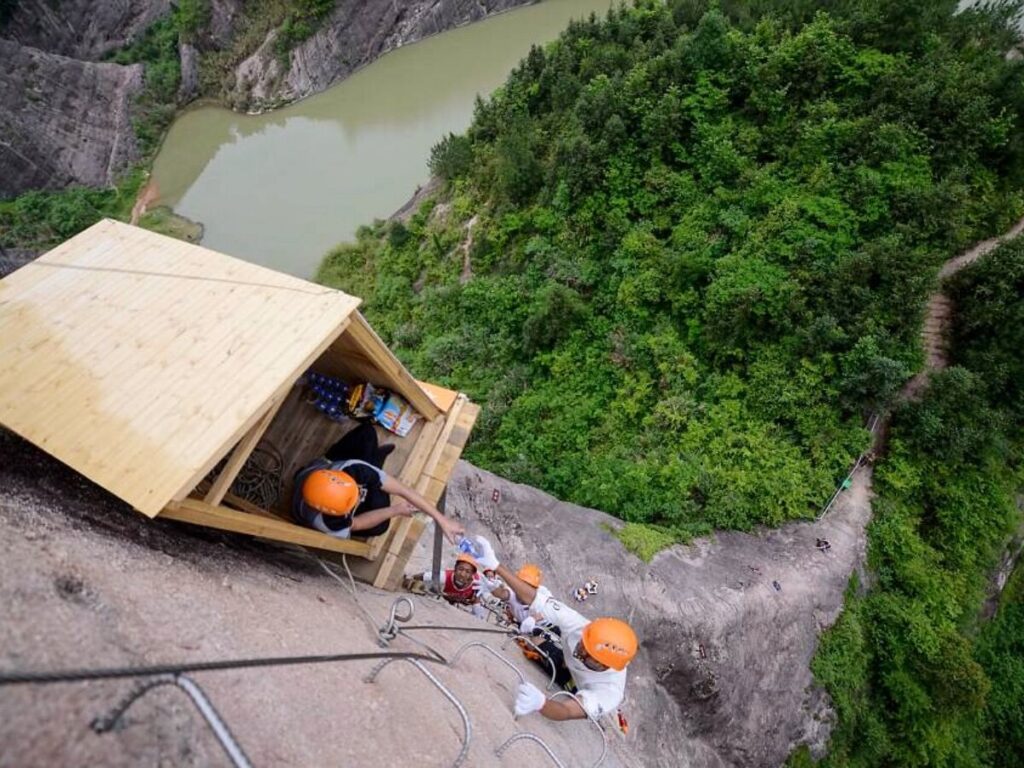 Чтобы торговая точка пользовалась спросом, она должна быть удобно расположена, предлагать большой ассортимент товаров и достойный уровень сервиса. Или быть единственной в округе, чтобы у покупателей просто не было вариантов. Именно поэтому магазин в Национальном геологическом парке Синьючжай в китайской провинции Хунань успешно работает. Он расположен на отвесной скале на высоте 120 метров, а его покупатели — скалолазы.