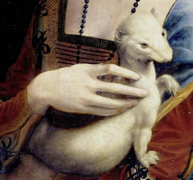 Но самой интересной и таинственной деталью стал белоснежный зверек — горностай. Существует несколько интерпретаций того, что именно символизирует животное.