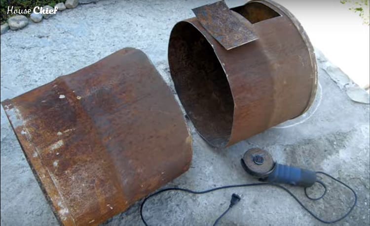 Муж разрезал бочку пополам и там, где было дно, вырезал окошко для поддувала и извлечения золы