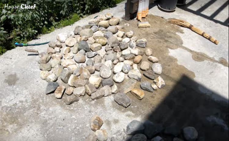 Решение нашлось неподалёку на берегу реки. Мы взяли тачку и привезли с берега окатыши. Старались брать одного размера и правильной формы