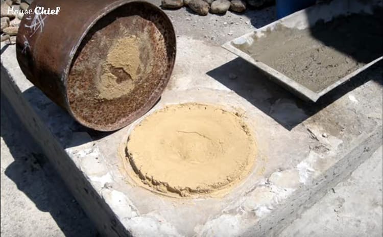 Для дальнейшей работы нам потребовалось немного песка и цемента. Сделали раствор и после обеда приступили к работе