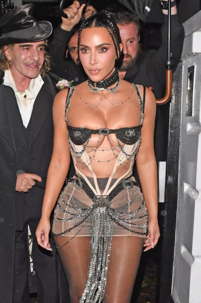 На вечеринке Кардашьян появилась в «голом» платье John Galliano и в сопровождении самого 64-летнего дизайнера. Известно, что гостями вечера также стали модели Кейт Мосс и Стелла Максвелл, певица FKA Twigs, мать Ким Крис Дженнер, а также коллеги Кардашьян по сериалу — актрисы Айла Фишер, Наоми Уоттс и Сара Полсон.