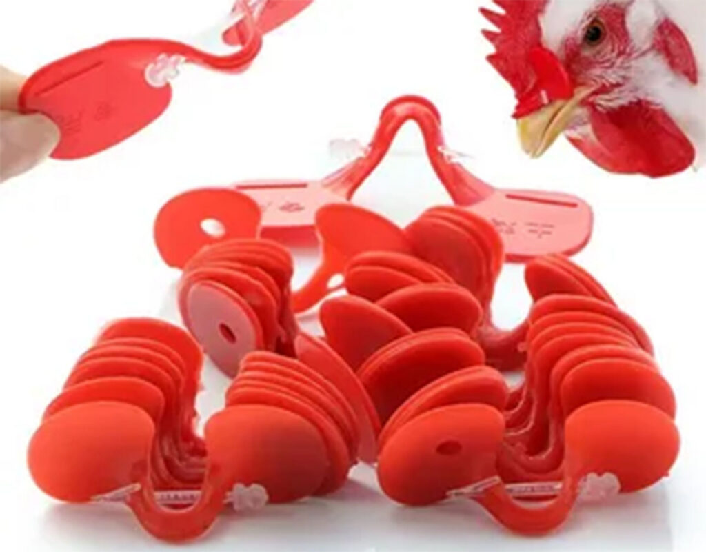 Такие очки надевают и на куриц, когда есть необходимость. Это остужает пыл клевачих особей, а если в стайке царит общий расклёв, когда вообще все курицы ссорятся, – очки не позволяет им обижать друг друга.