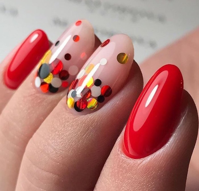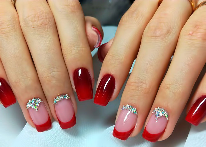 2019 год украсил красный маникюр с различными рисунками, со стразами, а также в вариации омбре (градиентного маникюра) и френча. Безусловно, маникюр может быть индивидуальным в зависимости от техники и оттенков (выделяют примерно 26 основных оттенков красного – кардинал, бордовый, киноварь, бургунди, ализариновый, алый и так далее), украшений и рисунков. Оттенки красного хорошо смотрятся с белым, золистым, серебряным и черным цветами.