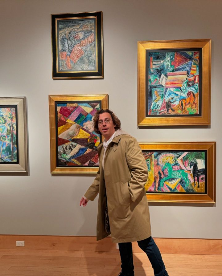 «Побывал в Украинском музее в Нью-Йорке, небольшая, но очень интересная экспозиция украинского модернизма: Давид Бурлюк, Владимир Бурлюк, Мария Синякова, Александр Богомазов и другие. На первом этаже отдельная и представительная выставка Александры Экстер. Ее картины, эскизы к декорациям и костюмам. В одном из залов транслируется фрагмент старого фильма «Аэлита» с костюмами работы художницы, один из которых также представлен на выставке » – написал Максим в своей публикации.