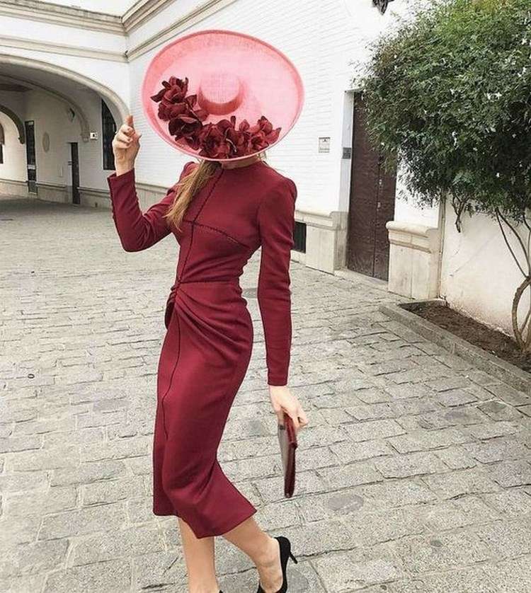 2. Классическое красное платье, дополнением для которого может стать вот такая шляпа.