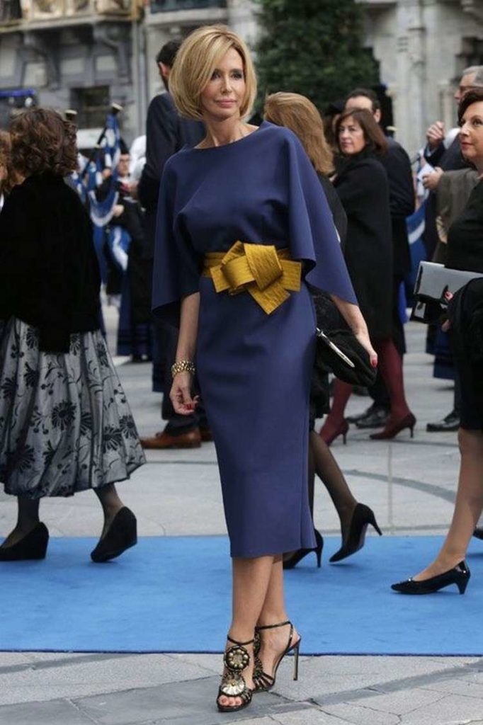 19. Несколько строгий наряд с ярким оттенком, который подчеркнут фигуру.