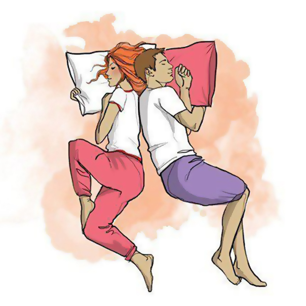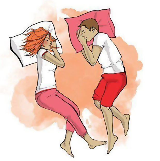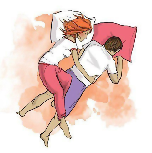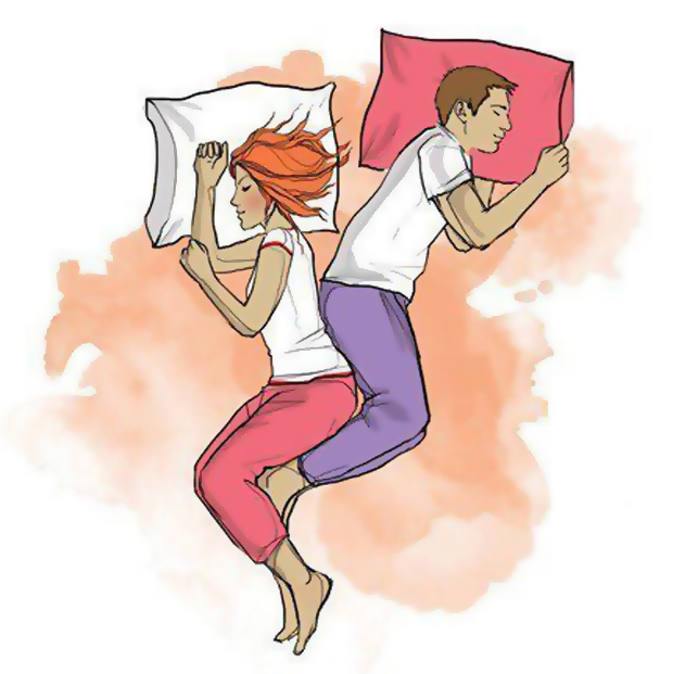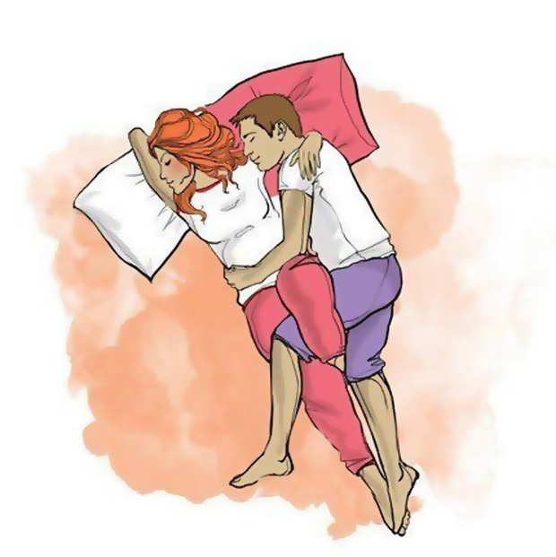 2. Так спят пары, которые объединены крепкой связью, но проводят много времени отдельно. Она может проводить по 10 часов на работе, а он — ночи напролет с друзьями. И наоборот. Партнеры принимают друг друга такими, какие они есть.