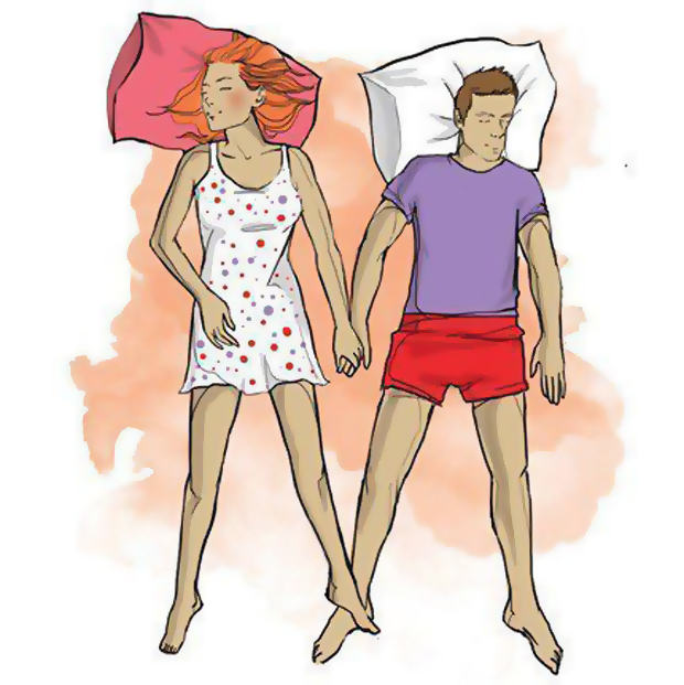 10. Так обычно спят возлюбленные, темперамент которых очень похож. Похожи они могут быть и внешне — ростом, телосложением… Об их ощущении безопасности свидетельствует то, что лежат они расслабленно на спине, но при этом должны иметь физический контакт.