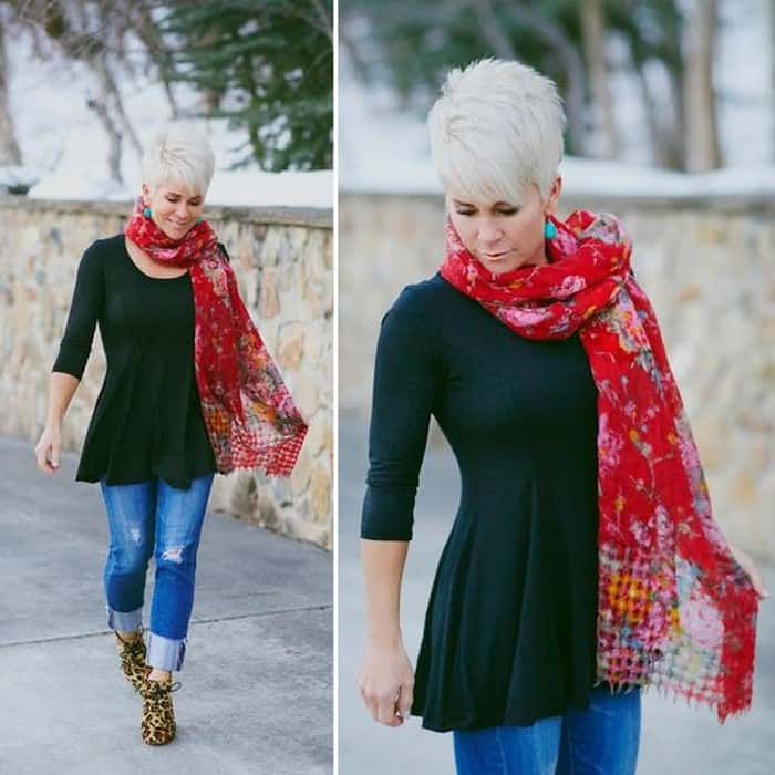 Для многих неприемлемы открытые наряды и яркие расцветки. Абсолютно не страшно. Если вы хотите надеть закрытый наряд, то сделайте это изящно. Лучше всего, например, прикрывать шею не водолазкой, а легким платком, шарфом или шалью. Стильный аксессуар вполне дополнит модный образ.