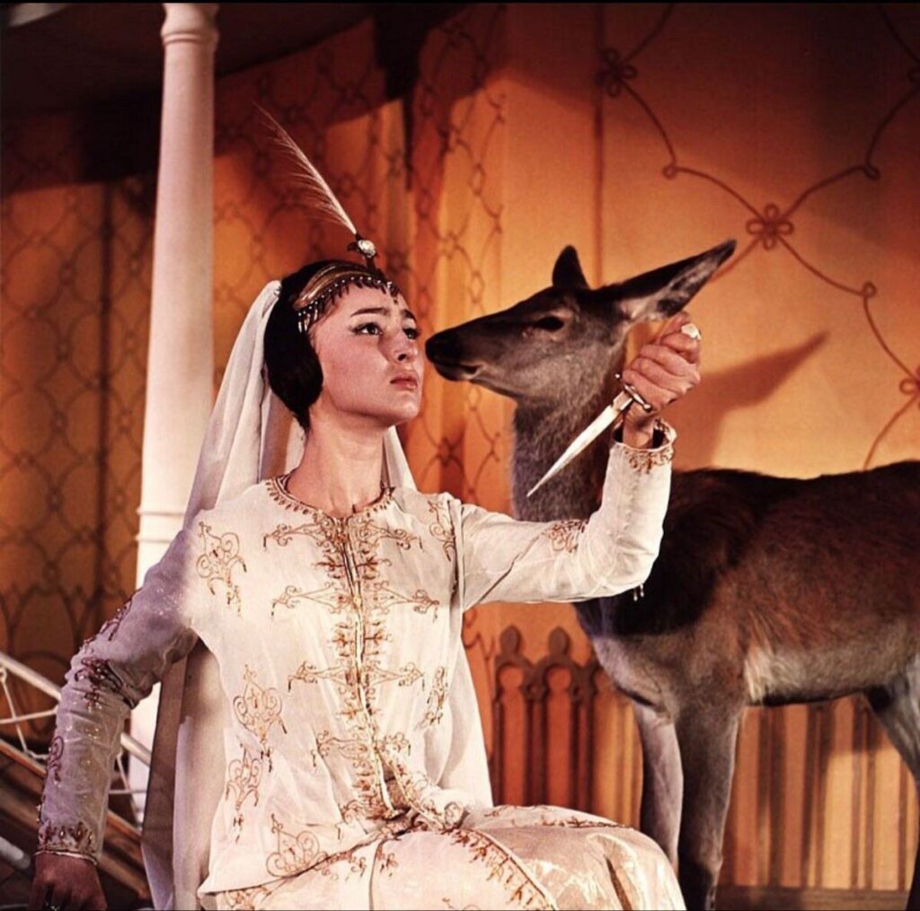 Но карточка и фотографии Додо Чоговадзе на студии остались, и когда Борис Рыцарев искал актрису на роль принцессы Будур для киноленты «Волшебная лампа Алладина», ей прислали приглашение. Прелестная, тонкая, с грацией балерины (не зря она училась хореографии, и ей прочили карьеру в балете), с лицом настоящей восточной принцессы — она идеально подходила на роль. На этот раз на вопрос режиссера про возраст мама Додо чуть слукавила: ей было пятнадцать, но Ираида добавила дочери один год.