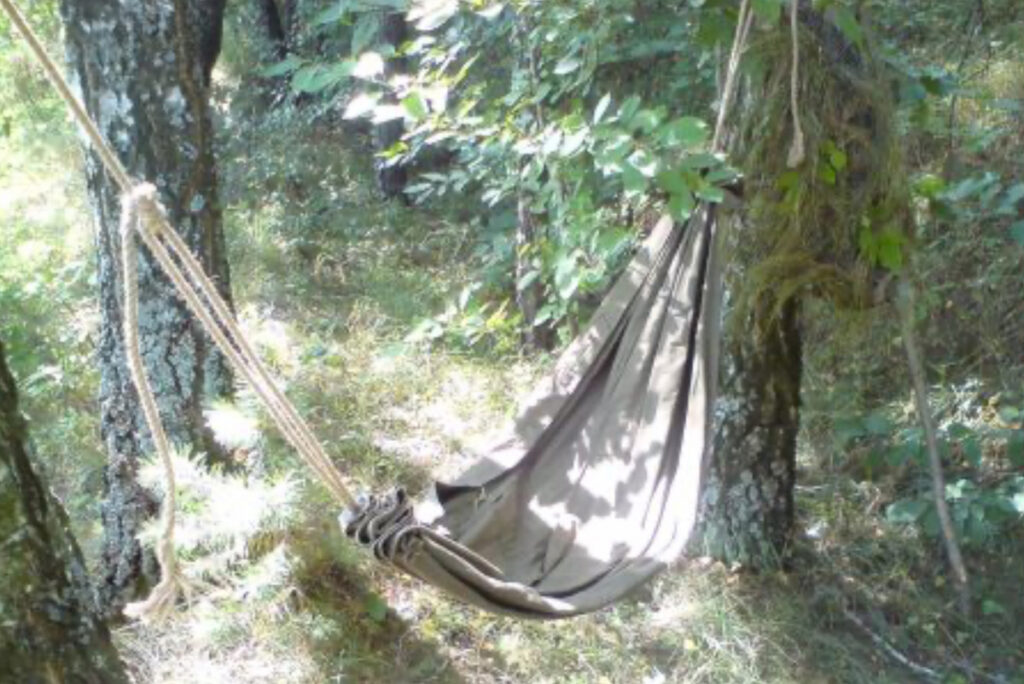 Навес от дождя: Натянул на ветки — и у тебя место, где можно переждать ливень, приготовить еду, починить обувь.