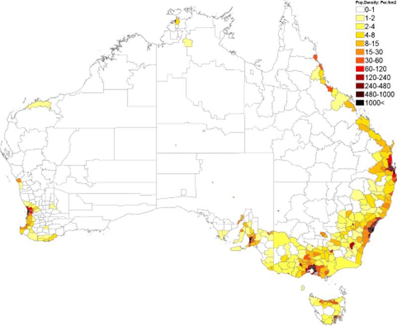 Ограничение не только в воде, но и в качестве почв. Во многих районах Австралии они бедные и хуже подходят для интенсивного земледелия. Поэтому даже там, где удавалось решить вопрос с водой, это ещё не означало, что землю можно легко превратить в очень продуктивые поля. По этой причине Австралия развивалась скорее через пастбища, овцеводство и скотоводство, чем через сплошное фермерское заселение внутренних районов. Где природные условия лучше, там жизнь и хозяйство держатся увереннее. Где хуже — плотность населения быстро падает.