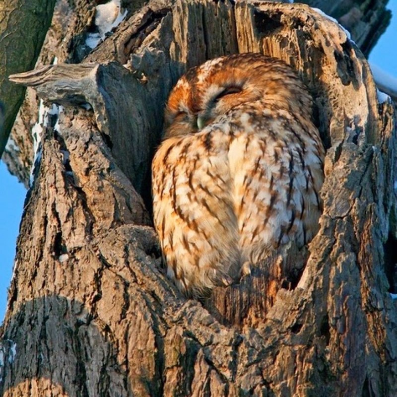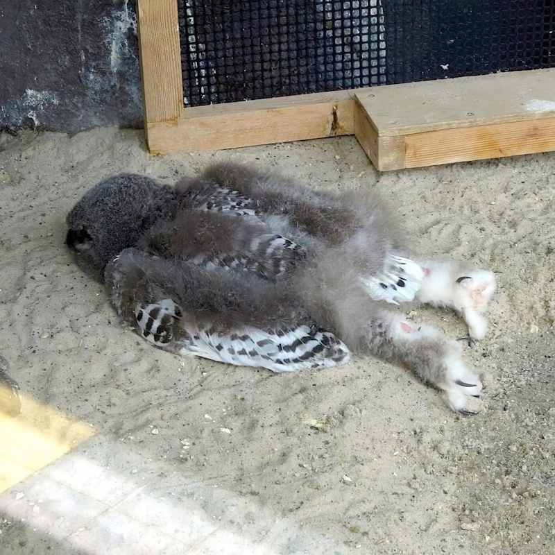 Обычно взрослые совы спят сидя. Связки на их лапах устроены так, что они могут отдыхать почти без затрат энергии. Но в гнезде даже взрослые пернатые могут прилечь по-настоящему