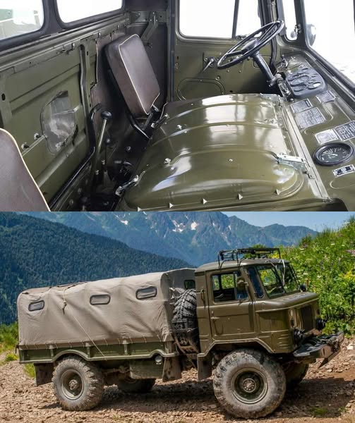 Клиренс грузовика составляет 315 мм, что прибавляет ей возможность преодолевать трудные препятствия. Кабина здесь расположена над двигателем, привод колес полный, колесная формула 4х4. ГАЗ-66 может перевезти до 2 тонн груза, для этого в задней части обычно устанавливается грузовая платформа или кунг.