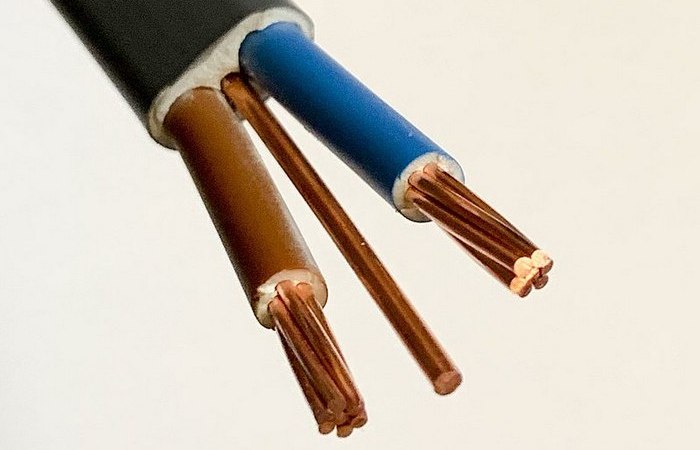 Эти кабели, например типа NM (Romex), содержат две изолированные жилы, предназначенные для фазы и нейтрали, а также одну неизолированную медную жилу, которая выполняет функцию заземления. Такая конструкция обусловлена особенностями местных стандартов электропроводки (NEC – National Electrical Code) и строительными традициями.