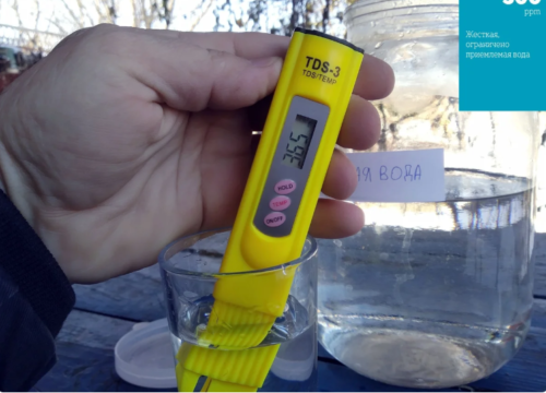 Но я со своими проверками пошёл дальше. У меня есть специальный прибор, который показывает жёсткость воды и её кислотность. Чтобы эксперимент был достоверным, я взял ещё одну (обычную) воду – для сравнения.