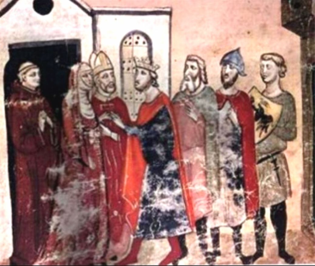 Под пристальным наблюдением зевак 40-летняя женщина произвела на свет здорового мальчика, будущего императора Фридриха II Гогенштауфена.
