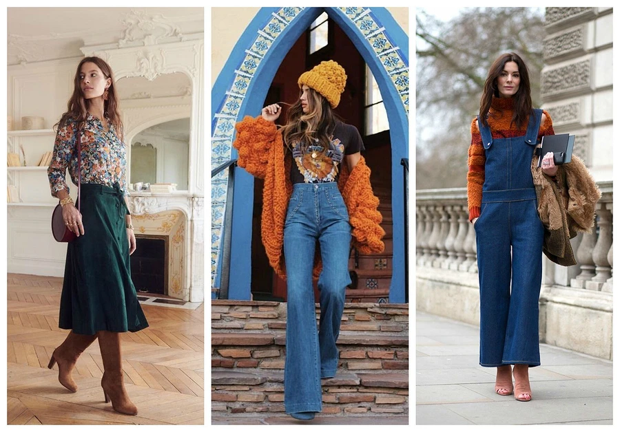Актуальные в семидесятых годах прошлого века фасоны снова на пике популярности! Причем на выбор — всё разнообразие десятилетия: от брюк и джинсов-клеш до платьев и сарафанов А-силуэта. В грядущую зиму мы возьмем с собой и все прочие атрибуты 70-х, например, цветочный принт, замшу, клетку, водолазки, вязаные кардиганы, блузоны, туники в сочетании с брюками и многое-многое другое!